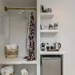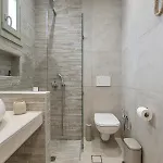A szobákban csempe padló található. Minden fürdőszoba tartalmaz külön WC-t és zuhanyzót.